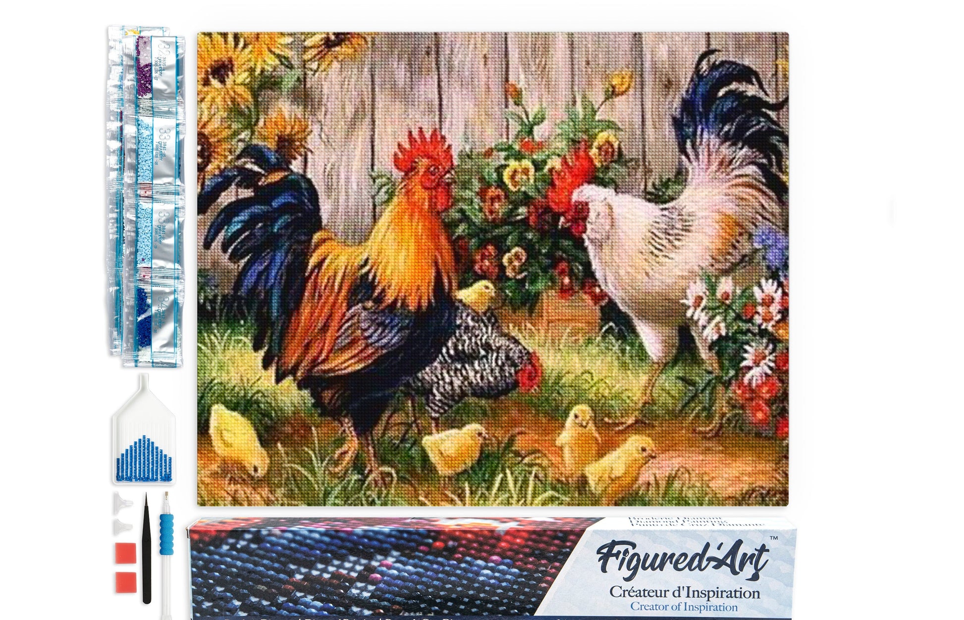 Diamond Painting - Roosters' farm - 40x50cm Rolled canvas