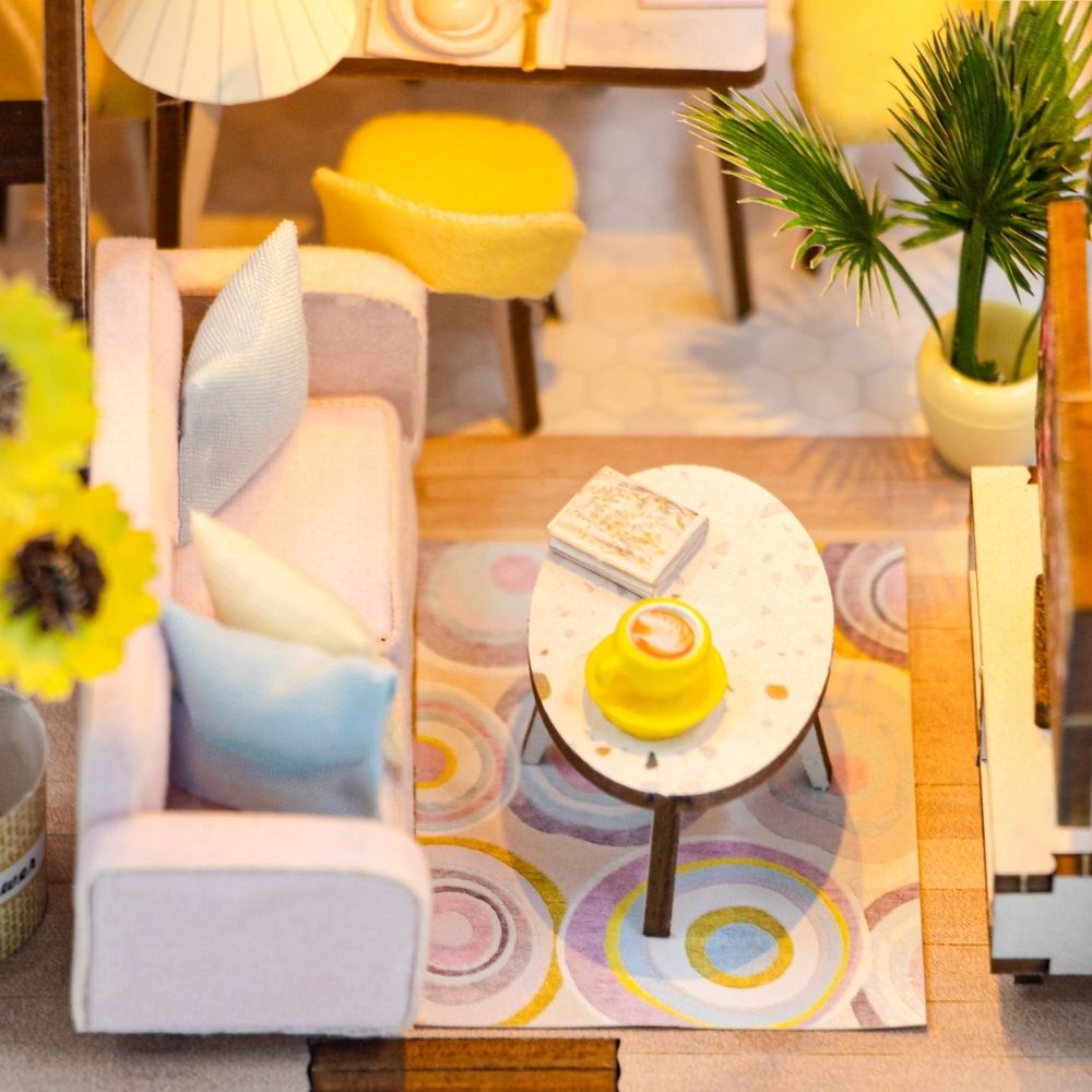 The Pink Loft Wood Book Nook is a miniature sanctuary of modern living—chic, cozy, and filled with warmth. Designed in soft pastels and glowing with gentle light, it transforms your bookshelf into a stylish loft apartment full of comfort and charm. Inside, every detail tells a story of home: a plush pink sofa with cushions, a sunny dining table set for two, a sleek kitchen stocked with essentials, and a bright upstairs loft bedroom. Sunflowers and indoor plants bring fresh bursts of nature, while golden pendant lights and delicate chandeliers add elegance to the space. The Pink Loft captures the harmony of daily life—a blend of relaxation, beauty, and creativity. It’s a place where you can imagine reading, dining, and resting in peace, away from the rush of the world.