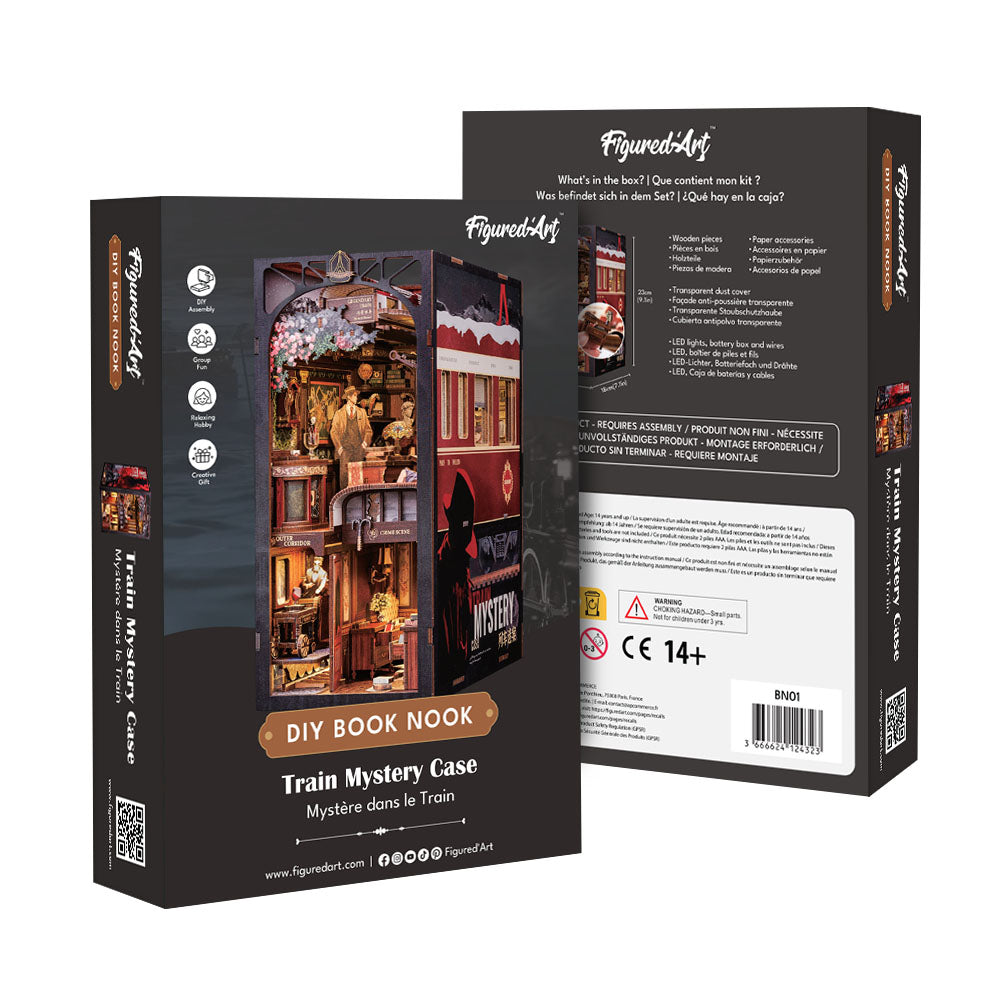 Bring the intrigue of the "Train Mystery" to your bookshelf, desk, or any flat surface with this captivating DIY Book Nook kit. Assemble, decorate, and light up your very own miniature world! Proudly display your creation as a unique bookshelf insert or a standalone miniature scene, perfect for any mystery lover's home.