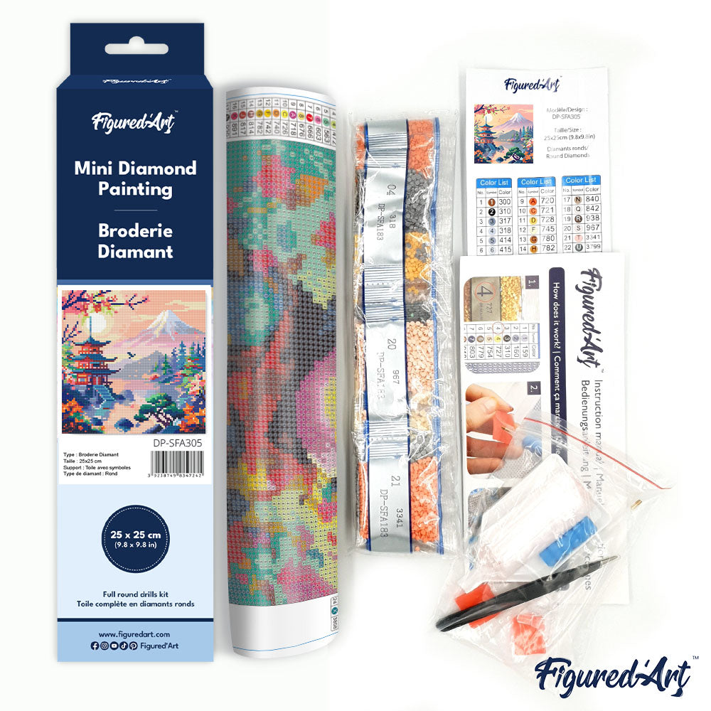 Mini Diamond Painting 25x25cm - Pagoda and Mount Fuji Rolled canvas