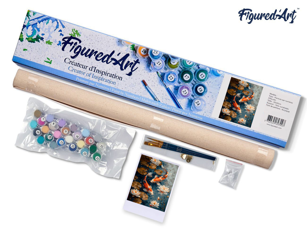 Paint by numbers Vintage Koi Carp and Flowers - Rolled canvas